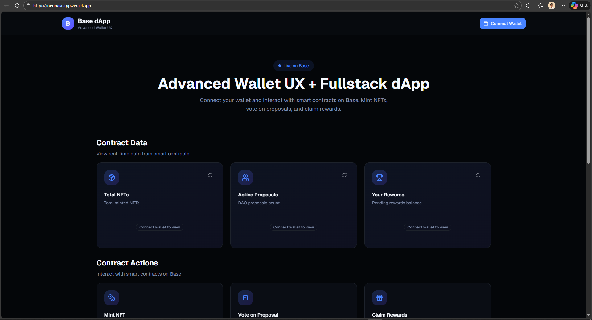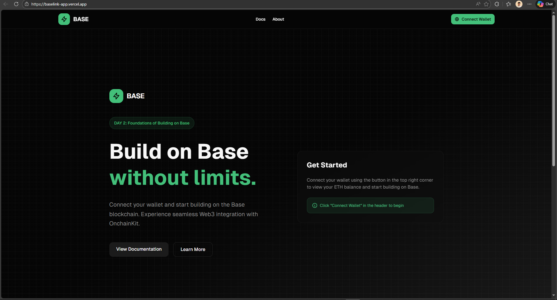 Base Link is a modern, clean UI project built on Base using OnchainKit, designed to help developers easily interact with on-chain features such as wallet connection, wallet status, and basic blockchain interactions. The project focuses on usability, simplicity, and a smooth developer-friendly experience.